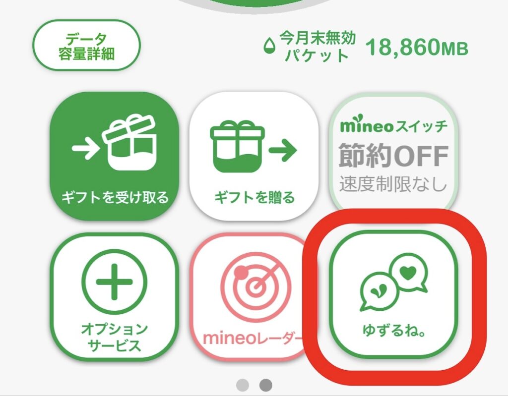 平日の11時30分~12時の間に、mineoアプリで「ゆずるね。」ボタンをポチッと押すだけ。
